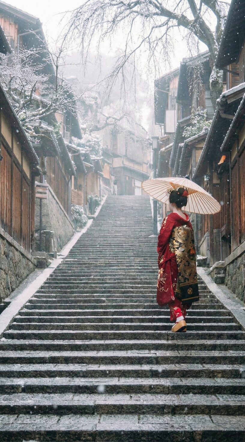 芸者さんと冬の世界を制作しました。