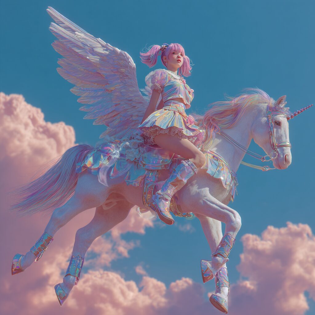 ってことで、ペガサスが空を飛んでいる画像にしました!
