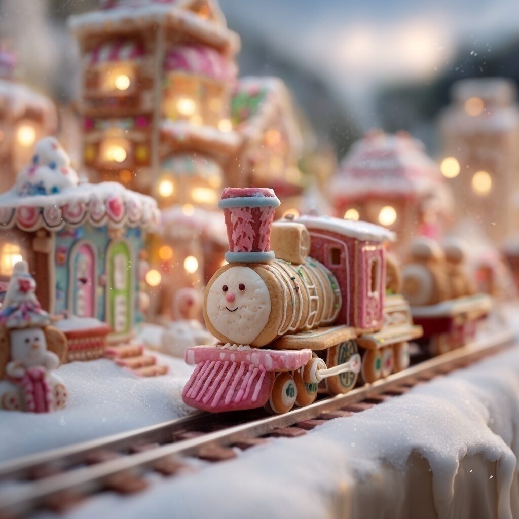 本日のAI画像:クッキーの街を走るクッキー電車🚂